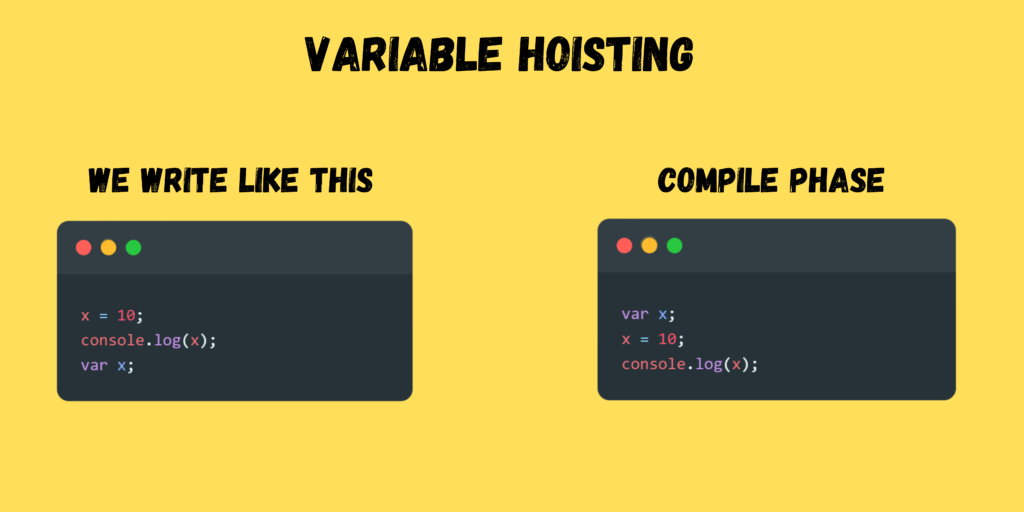 호이스팅를 통해 개발자는 변수 선언과 변수사용을 자유롭게 활용 가능하다. 즉 항상 상단에 변수 선언과 할당을 하지 않더라도 같은 스코프라면 언제든지 변수를 사용할 수 있게 되는 것이다.