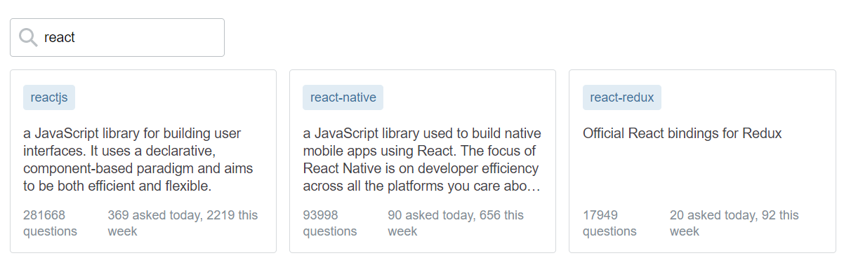 소프트웨어 개발자들 사이에서 가장 인기가 많은 웹사이트는 스택오버플로우다. 해당 웹사이트에선 25만 개가 넘는 리엑트 관련 질문들이 있다.