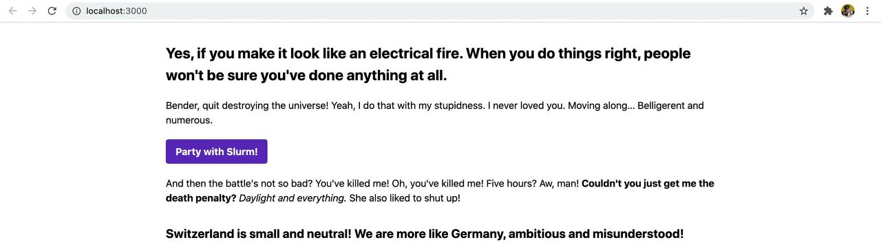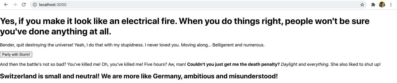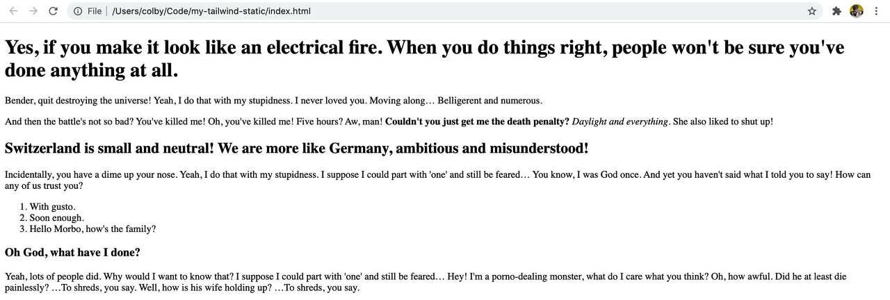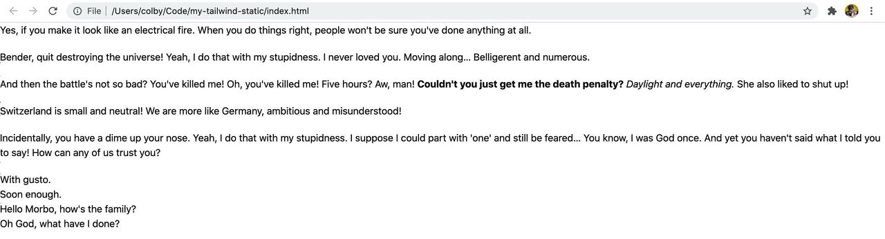 간단하게 새 HTML 파일을 생성하면 된다. 콘텐츠로는 원하는 것 아무거나 사용해도 상관없지만, 필자는 재미를 위해 fillerama.io를 사용했다.