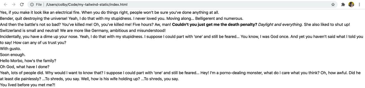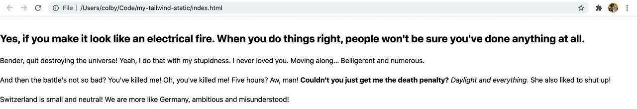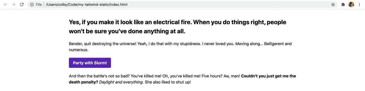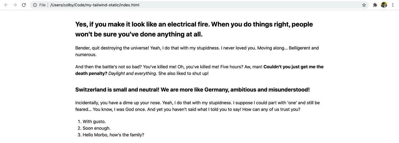 Tailwind가 설치되었으니, 라이브러리의 수많은 유틸리티 클래스를 사용해 페이지에 스타일을 추가할 수 있게 되었다.