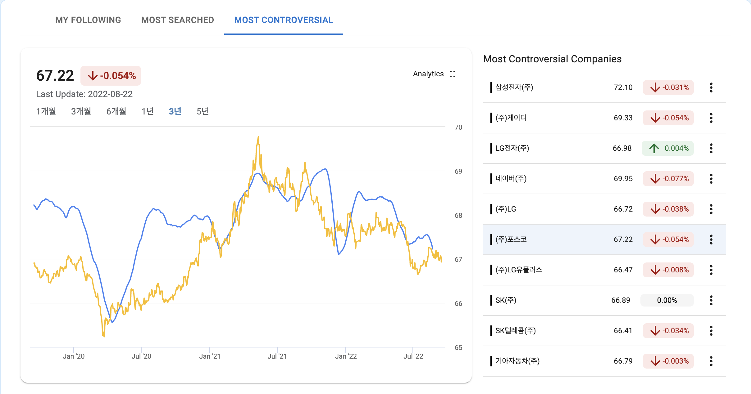 유저가 대시보드에 진입하면 My following 탭을 우선 보여주는 게 아닌 Most searched, Most controversia 탭을 먼저 보여줍니다. 유저가 해당 탭을 보고 있을 때 클라이언트에서는 미리 팔로잉 회사 데이터를 서버에다 요청해 놓는 겁니다. 만약 서버에서 응답이 도착하면 이를 글로벌 스토어나 로컬 스토리지에 저장을 하고 My following 탭에서는 응답 데이터를 이용하는 게 아닌 스토어나 로컬 스토리지에서 데이터를 찾아서 렌더링을 하도록 하는 거죠.