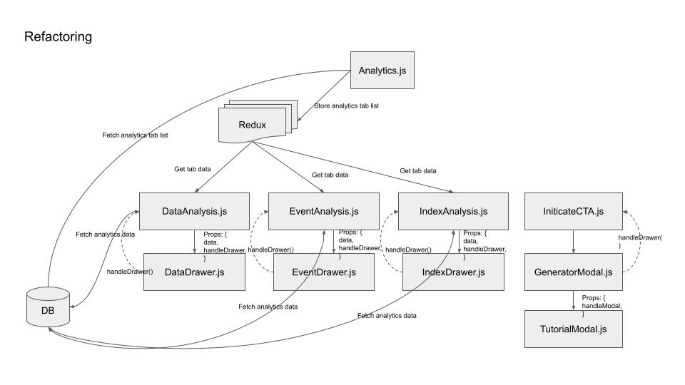- DataAnalysis.js / EventAnalysis.js / IndexAnalysis.js.는 서로 다른 데이터 구조와 필터 옵션을 가지고 있습니다. 이 모든 차이점이 Analytics.js와 GeneratorDrawer.js에서 'If' 구조문에 의해 핸들링되고 있었습니다.