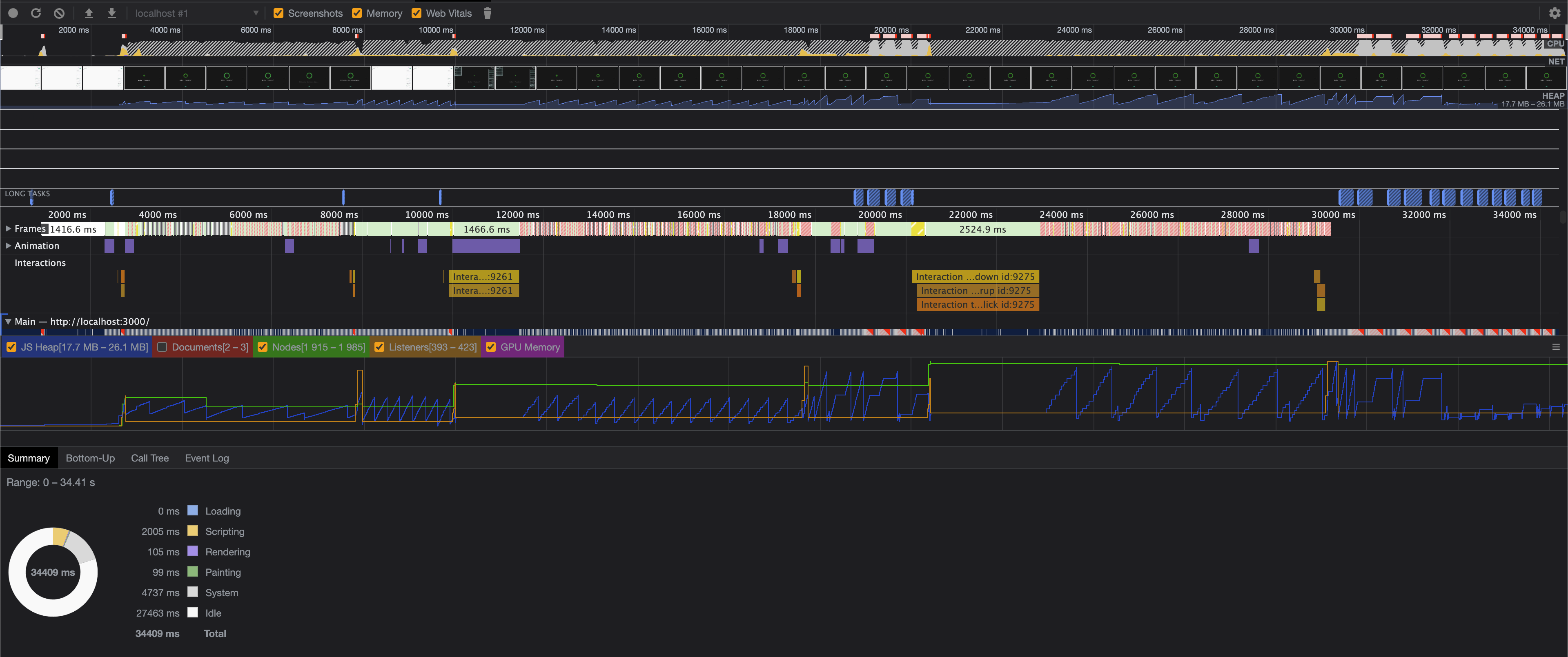 우선 개발자 도구를 통해 퍼포먼스를 측정해 보았습니다.