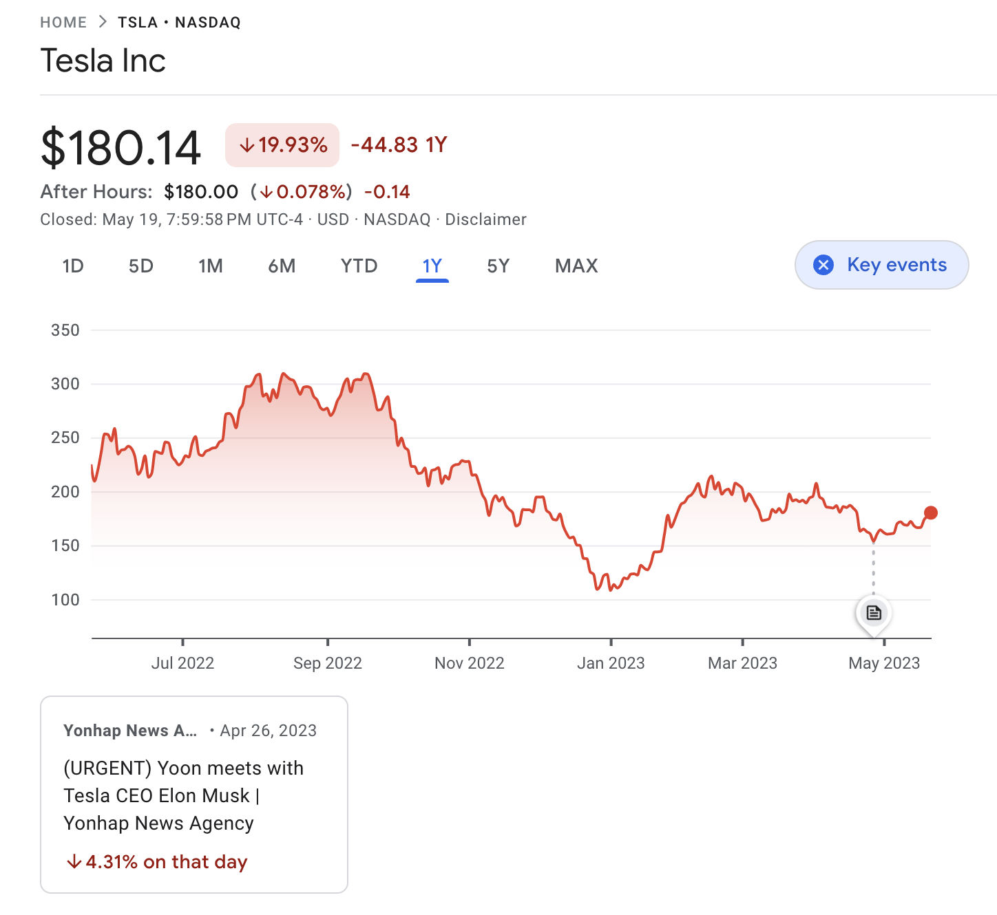 구글 파이낸스 웹사이트에서는 Key events라는 신기한 기능을 지원하길래 비슷한 기능을 highchart로 구현해 보았습니다.
