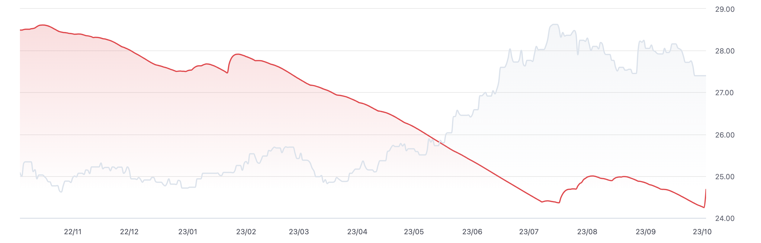 하지만 디자이너님이 바랬던 x축 디자인은 매월의 중간에 tick이 표시되는 것이었습니다. 예를들어 10월 1일이 아닌 10월 15일의 위치에 날짜가 표시되는 방식으로 말이죠.
