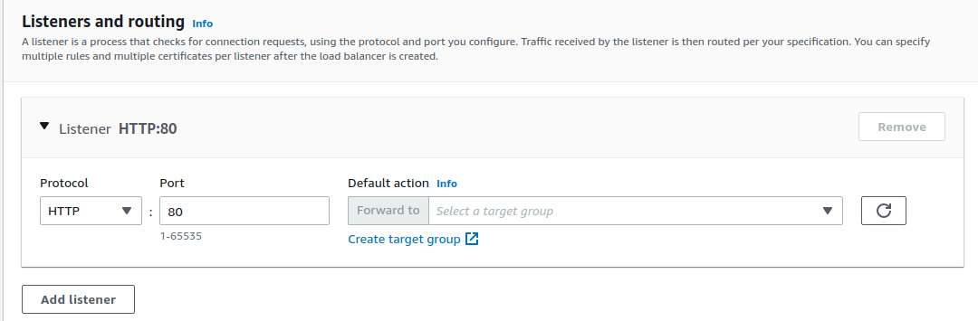 그중 필자를 가장 괴롭혔던 부분은 아래 로드밸런서 생성에서 target group 설정이었다.